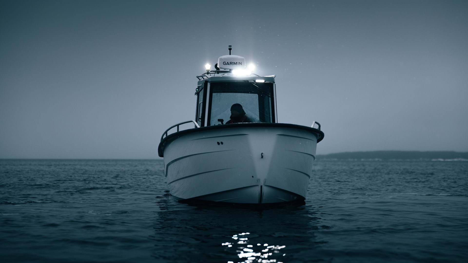 The 725 Pro Cabin XL cockpit can house up to five (5) adults comfortably, where the aft seats is suitable for three and the drivers bench seats two people. The height of the wheelhouse provides more than enough space to stand up and proper lights inside makes it easier to use the boat during darkness. The heater system quickly heats the wheelhouse to comfortable temperatures. The Garmin Fusion System has bluetooth connection and 2 speakers, enabling you to play music or listen to radio. 725 Pro Cabin XL can be fitted with either Garmin Echomap 72SV, Garmin Echomap 92SV or the Garmin 1223 XSV (compatible with the Garmin GMR Radar system).